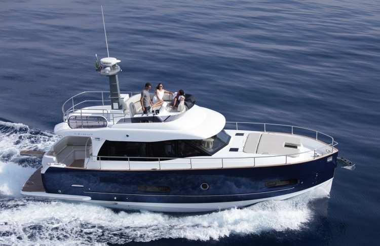 Azimut Magellano 43The luxury yacht Azimut Magellano 43 is really large and beautiful new model yacht from the famous Italian yacht-builder. The classic design, the improved autonomy and the perfect seaworthiness make this yacht perfect for long distance travel, which will make your cruise comfortable and really exciting. Azimut Magellano 43 has overall length of 13.63 m, moulded beam of 4.40 m and maximum summer draft of 1.20 m. The yacht looks small, but actually is quite comfortable offering really great capabilities for traveling. The displacement of the luxury Azimut yacht is 18.15 tons and the building material is VTR/GRP. The yacht has 3 cabins, which all give wonderful comfort and really large living space with own bathroom. Azimut Magellano 43 is quite large having capacity for 5 passengers, who will enjoy the luxury interior and a lot of great places for sunbathing and water sports. The yacht has all the appliances, which you may need for water sports, diving and fishing. The luxury interior and the classical design are really impressive and great looking. Azimut Magellano 43 is fantastic yacht for traveling, private cruises and vacations.