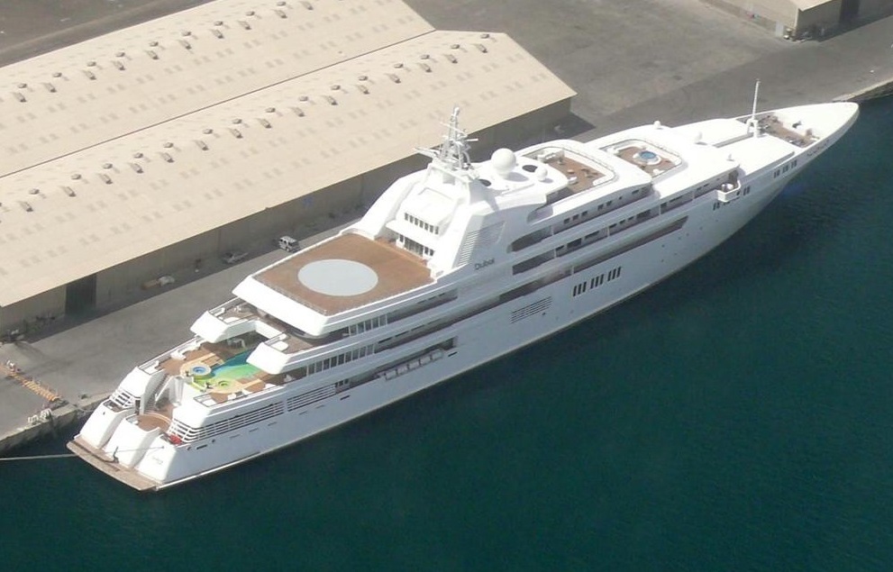 Super-yacht Dubai is one of the largest and most luxury private vessels in the world. This is third world’s largest yacht by length, which has amazing exterior and interior design. The overall length of Dubai yacht is 162.00 m, the moulded beam is 22.40 m, the depth is 9.20 m and the maximum summer draft is 5.00 m. With such dimensions the yacht has capacity for 24 passengers into the luxury accommodations, each with own bathroom, balcony and all the necessary furniture for nice cruise. The deadweight of the super-yacht is 9,150 DWT and the gross tonnage is 13,470 GRT. Dubai yacht has 12 staterooms for the guests, large restaurant, cinema, fitness gym and conference room. The super-yacht is owned by Sheikh Mohammed bin Rashid Al Maktoum, the Prime Minister of the United Arab Emirates and governor of Emirate of Dubai. The yacht has two outside pools and open=air bar for night parties. The guests can board the yacht to some of the both helicopter caps, by small motor-boats or even by submarine. The super-yacht Dubai is one of the most secured yachts in the world, having steel superstructure and armed windows.